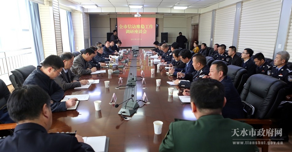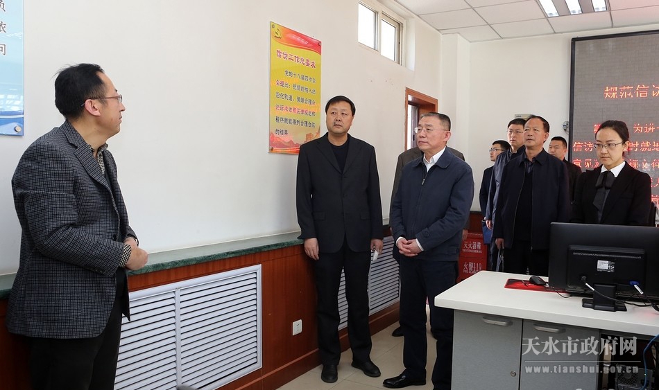 3月1日,天水市委书记王锐带领市综治办、市维稳办、市公安局、市信访局负责人,对全市信访维稳工作进行了专题调研。他强调,要以高度的政治责任感和现实紧迫感,盯紧抓牢信访维稳工作,加强矛盾纠纷排查调处,全面落实防控化解措施,依法妥善处置突出问题,确保全市社会大局和谐稳定。市委常委、秘书长、政法委书记蒋晓强一同调研。
